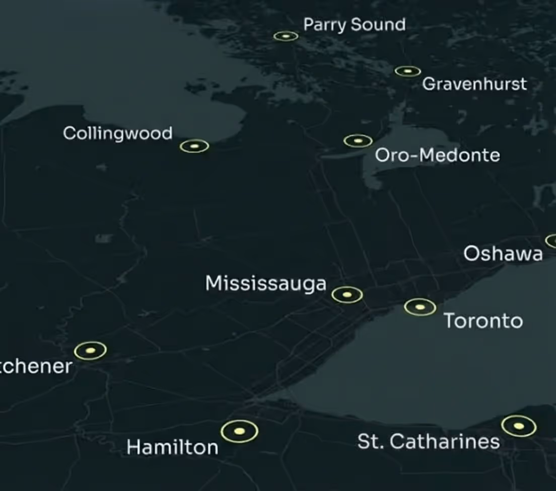 Sample routes from CYOO. Prices shown in CAD & vary by trip duration & airport selection. Samples above shown for same-day round trip. Tax not included.